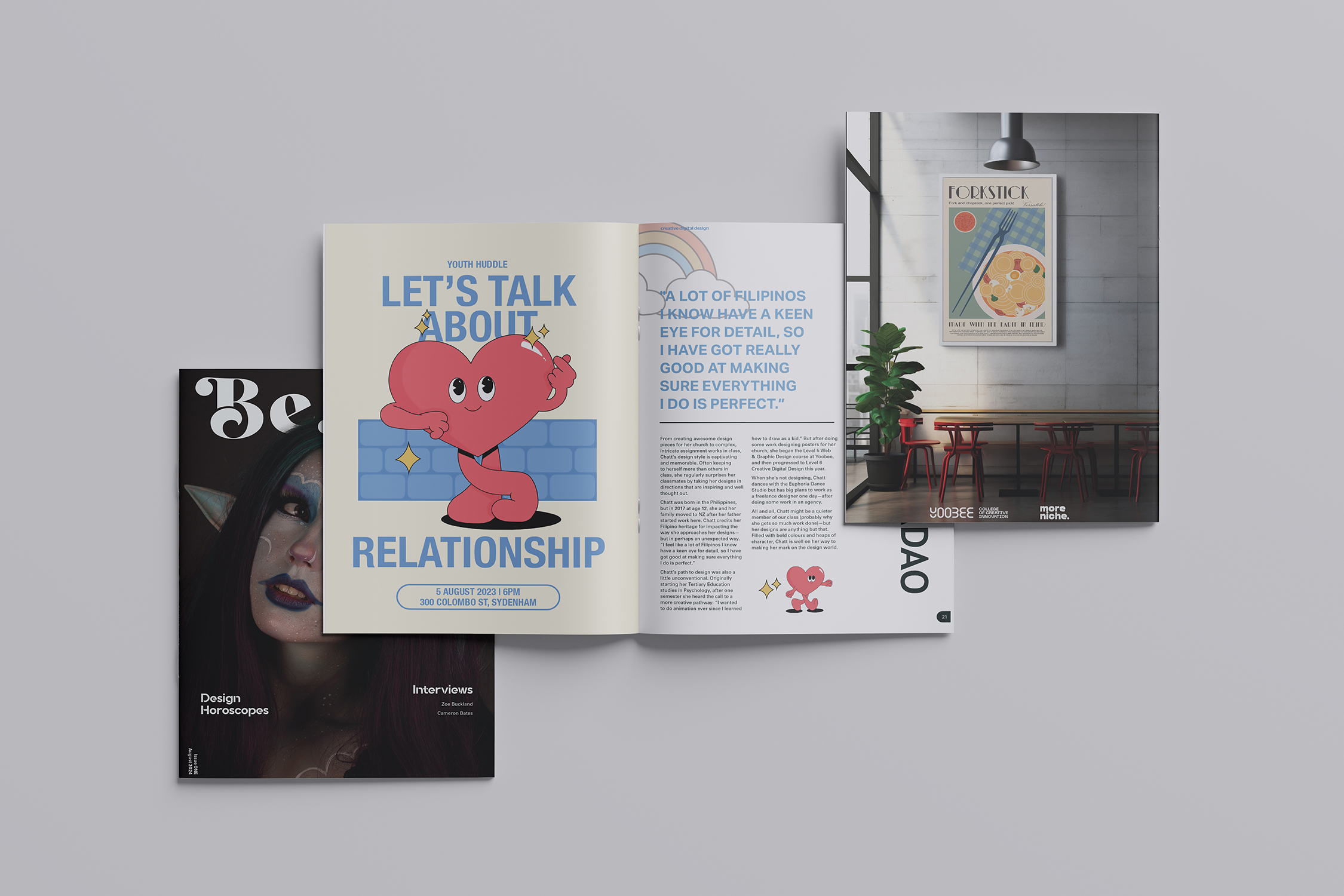 Beyond its immediate readership, Be.You became a valuable recruitment and showcasing tool for the college, demonstrating the quality of student work and the collaborative, creative culture at Yoobee College of Creative Innovation.