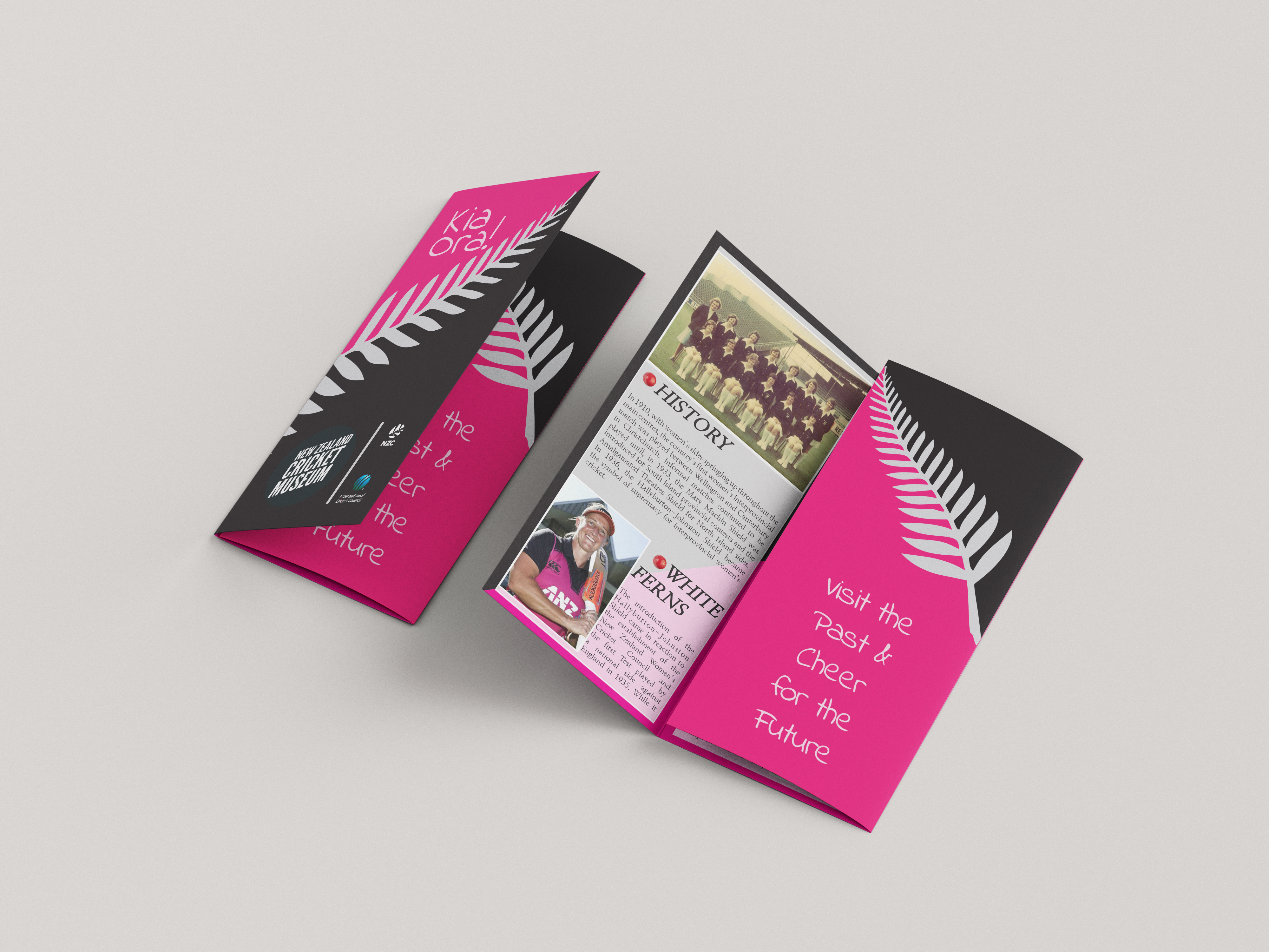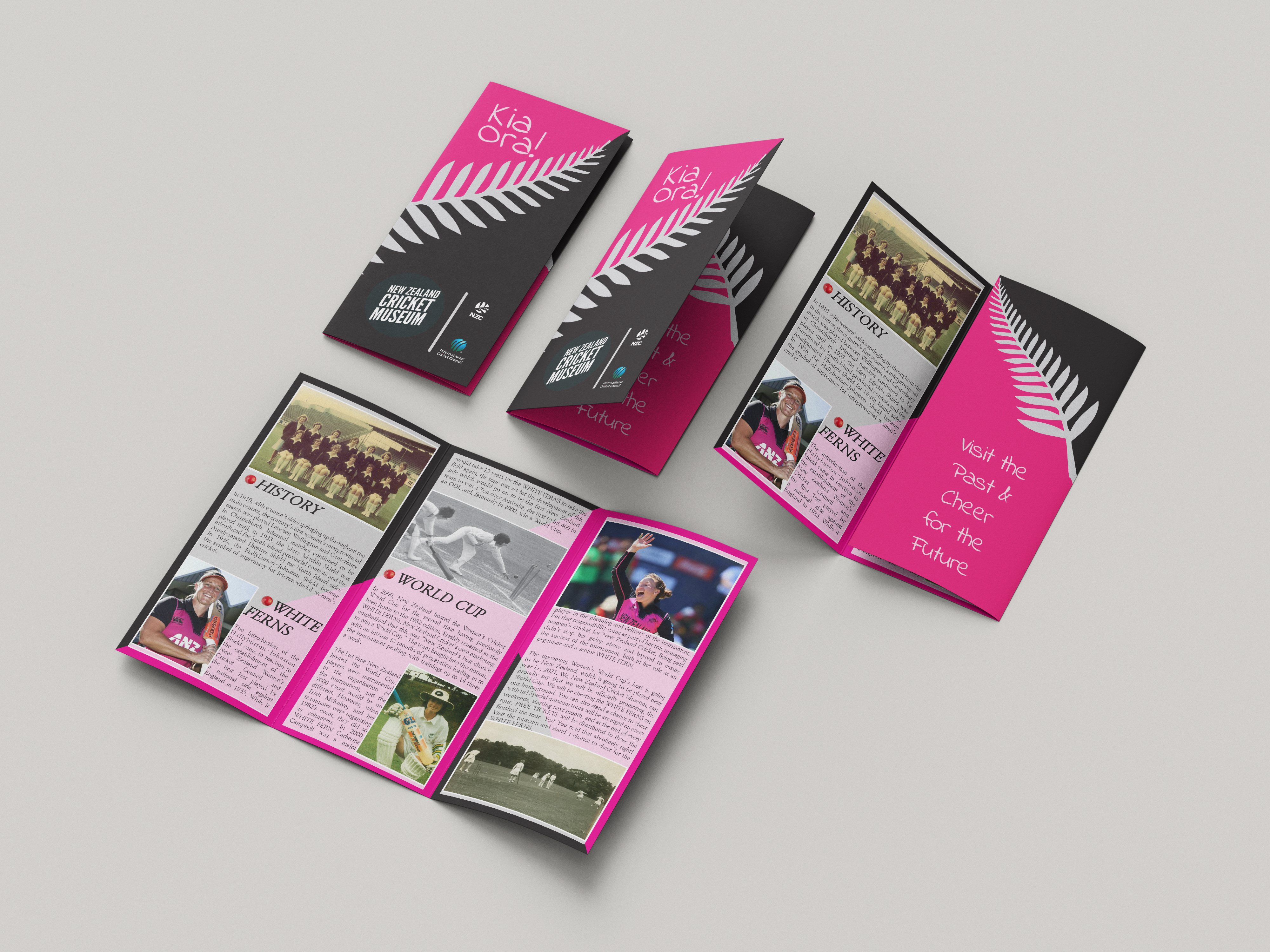 The project required creating an informational brochure that would serve multiple purposes: educating visitors about the often-overlooked history of women's cricket in New Zealand, promoting the museum as a destination for female cricket fans, and generating excitement for the upcoming World Cup. The design needed to be accessible, engaging, and informative while challenging traditional perceptions of cricket as a male-dominated sport.